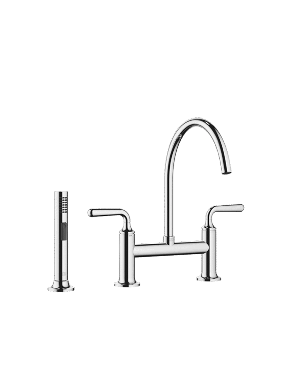 VAIA Two-hole bridge mixer with rinsing spray set – Chrome