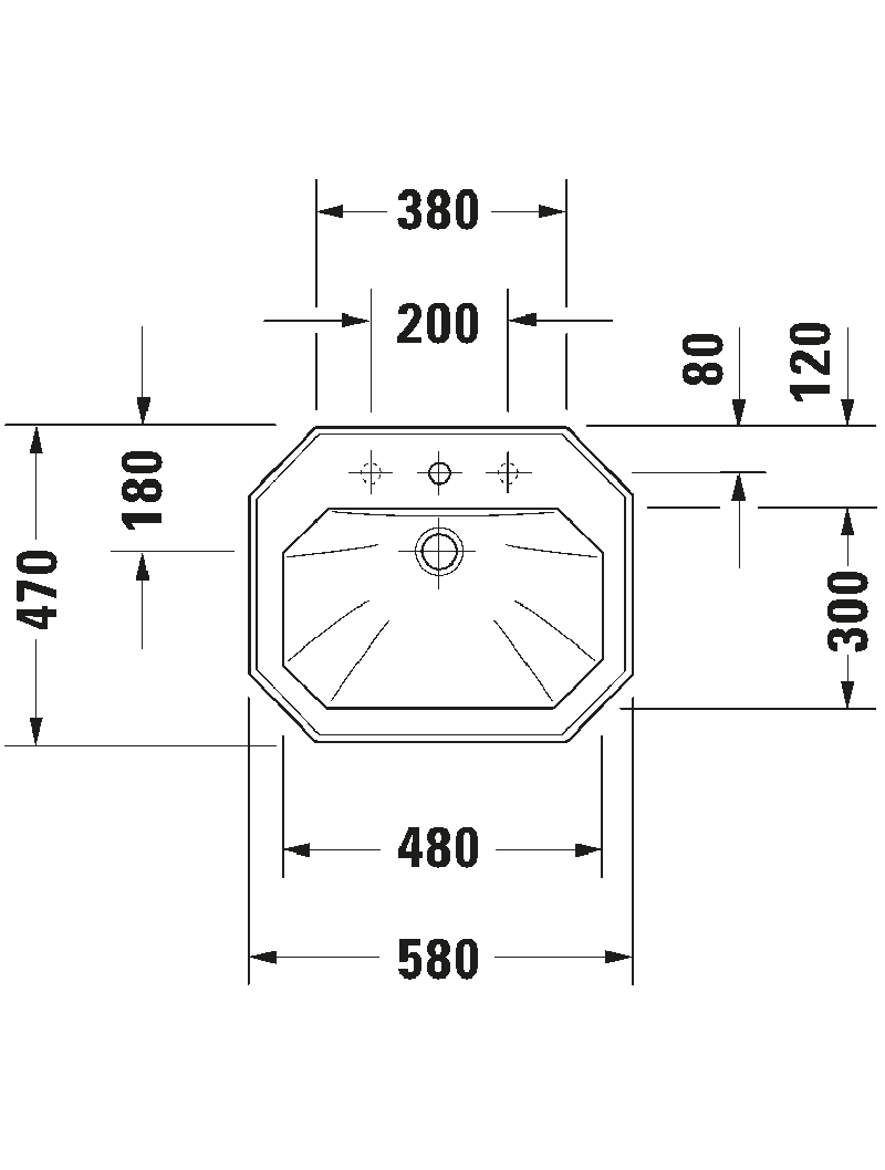 Lavabo tasarımı: Montaj, 580×470 mm, Batarya bankı: Evet, Su taşma deliği: Evet, Montaj türü: Tezgahüstü