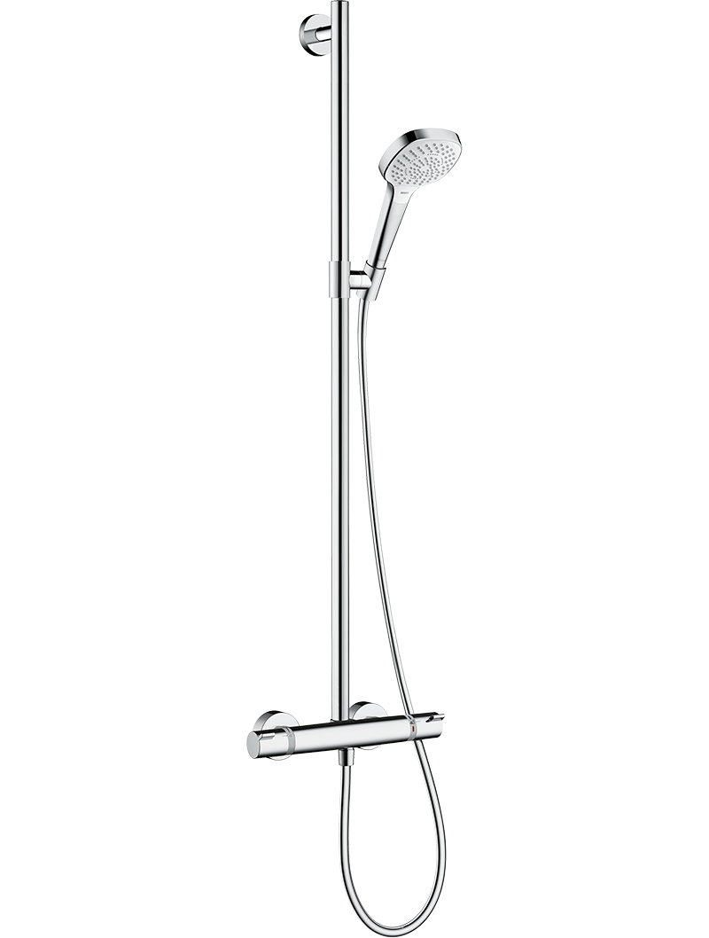 şunları içerir: el duşu, termostatik duş, duş hortumu, sürgü, duş barı duvar çubuğu, tutunma barı olarak da kullanılabilirel duşu sprey tipi: Masaj spreyi, IntenseRain, SoftRain el duşu akış miktarı (3 bar basınçta): 16 l/dk Duş kolonu için maksimum akış miktarı (3 bar basınçta): 16 l/dk minimum akış basıncı: 1 bar min. çalışma basıncı: 1 bar maks. çalışma basıncı: 10 bar duş barı çapı: 25 mm yüksekliği ayarlanabilir el duşu askısıtermostat Ecostat Comfort40 °C’de güvenlik kilidi ayarlanabilir sıcak su sınırlaması çıkışlar volanlar döndürülerek kontrol edilirmontaj türü: aplike montaj bağlantı ölçüsü: DN15 bağlantı dişlisi: G½ merkez mesafe: 150 ± 12 mm boru uzunluğu: 1000 mm 1 çıkış