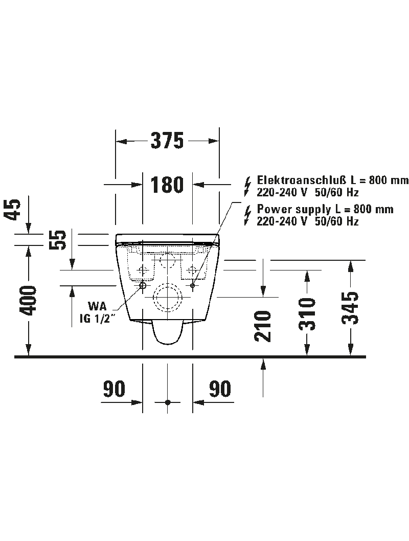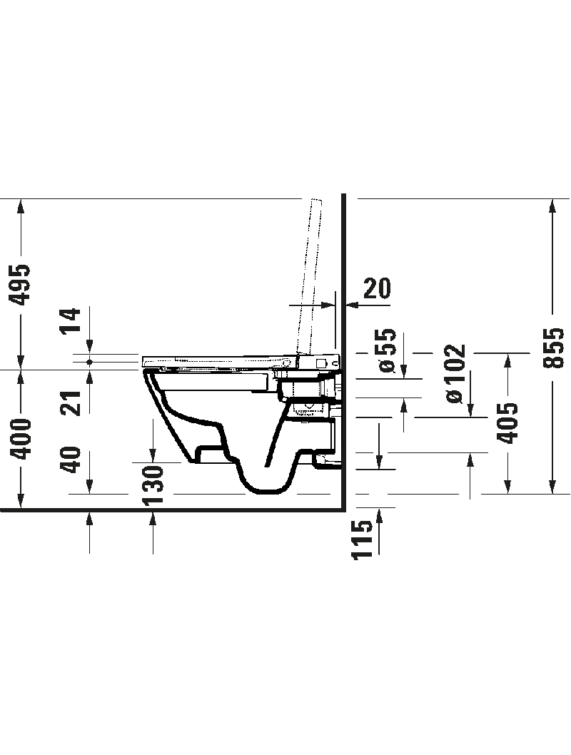Klasik sifon, Yıkama kanalı: rimless, Yıkama prensibi: Yer değiştirme, Çıkış yatay, Gizli bağlantı (Durafix)