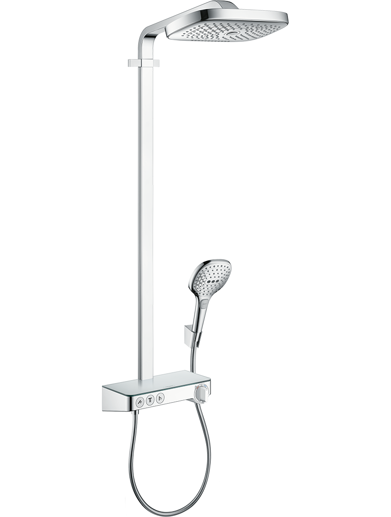 şunları içerir: tepe duşu, el duşu, termostatik duş, duş hortumu, duş askısı, duş barı tepe duşu Raindance Select E 300 3jetduş başlığı ölçüsü tepe duşu: 300 x 190 mm sprey tipi tepe duşu: RainAir, Rain, RainStreamSelect butonu ile kolay sprey seçimisprey diski yüzeyi: krom güvenli camdan üretilmiş rafraf yüzeyi: ayna cam RainAir sprey akış hızı (3 bar basınçta): 16 l/dk Rain sprey akış miktarı (3 bar basınçta): 16 l/dk RainStream akış miktarı (3 bar basınçta): 19 l/dk el duşu sprey tipi: RainAir, Rain, Whirl Duş kolonu için maksimum akış miktarı (3 bar basınçta): 19 l/dk minimum akış basıncı: 2 bar min. çalışma basıncı: 2 bar maks. çalışma basıncı: 10 bar tepe duşu 10° açılı eğimbar genişliği: 40 mm duş dirseği uzunluğu tepe duşu: 380 mmCoolContact termostat Ürünün ısınmasını önleyerek duş almayı daha da güvenli yapar termostat ShowerTablet Select 30040 °C’de güvenlik kilidi ayarlanabilir sıcak su sınırlaması Select butonu ile yönlendirmesürekli akış su ısıtıcıları için uygun montaj türü: aplike montaj bağlantı ölçüsü: DN15 bağlantı dişlisi: G½ merkez mesafe: 150 ± 12 mm geri akışa karşı doğal olarak güvenliGeçerli G ¾ bağlantılar üzerine montaj yapılacaksa, #02026000 numaralı adaptör kullanılmalı2 çıkış