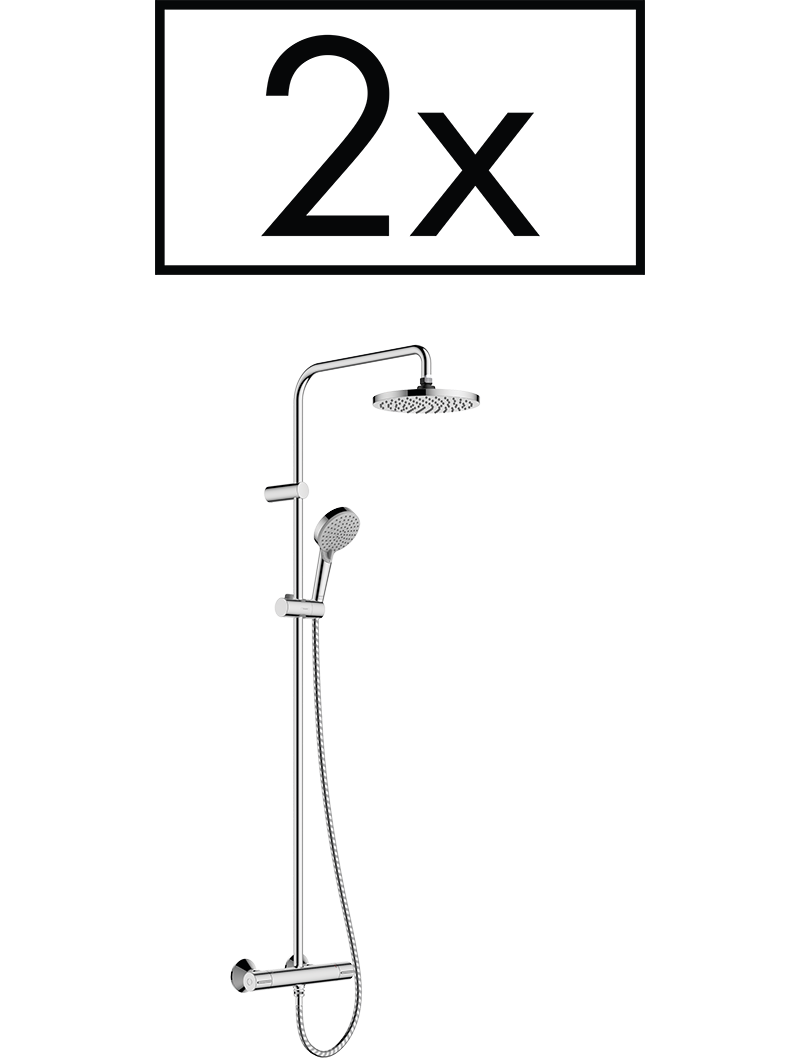 şunları içerir: tepe duşu, el duşu, termostatik duş, duş hortumu, sürgü tepe duşu Vernis Blend 200 1 jetduş başlığı ölçüsü tepe duşu: 205 mm sprey tipi tepe duşu: RainRain sprey akış miktarı (3 bar basınçta): 12,4 l/dk el duşu sprey tipi: Rain, IntenseRain el duşu akış miktarı (3 bar basınçta): 15,2 l/dk Duş kolonu için maksimum akış miktarı (3 bar basınçta): 15,2 l/dk minimum akış basıncı: 1 bar min. çalışma basıncı: 1 bar maks. çalışma basıncı: 10 bar küresel bağlantı: açısı ayarlanabilir tepe duşu duş barı çapı: 19 mm yüksekliği ayarlanabilir sürgü kilitleme düğmeli sürgü ile duş dirseği uzunluğu tepe duşu: 426 mm termostat Vernis40 °C’de güvenlik kilidi ayarlanabilir sıcak su sınırlaması çıkışlar volanlar döndürülerek kontrol edilir sürekli akış su ısıtıcıları için uygun montaj türü: aplike montaj bağlantı ölçüsü: DN15 bağlantı dişlisi: G½ merkez mesafe: 150 ± 12 mm geri akışa karşı doğal olarak güvenli boru uzunluğu: 1124 mm paketleme birimi: 2 adet 2 çıkış