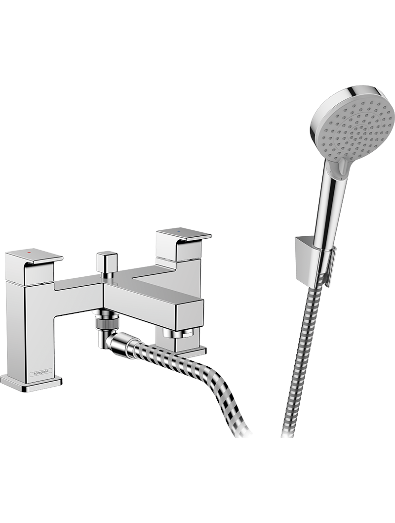 Vernis Shape 2-Delikli küvet kenarı banyo bataryası yönlendirme valfi ve Vernis Blend Vario el duşu ile