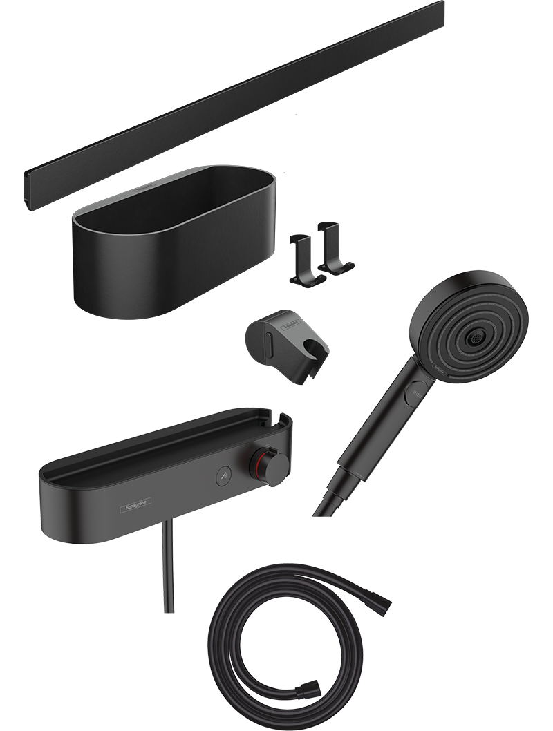 şunları içerir: el duşu, termostatik duş, duş hortumu, duvar tiji, saklama rafı, askılık, el duşu askısı el duşu sprey tipi: PowderRain, IntenseRain, MonoRain Select butonu ile kolay sprey seçimişekil: round dönebilir bağlantı: hortum bükülmelerine karşı hareketli bağlantı maksimum akış miktarı (3 bar basınçta): 8,5 l/dk montaj: duvar plastik raftermostat, el duşu düğmesi ile teslim edilirsıcaklık ve akış hızı kontrolü40 °C’de güvenlik kilidisprey sayısı: 3 sprey modu duş başlığı ölçüsü: 105 mm kir filtresi: yıkanabilir süzgeç ek parçası termostat tanımı: ShowerTablet Select 400 yatay ve dikey kurulum için uygun , uygulama – tutkal veya matkapla delme, kaldırma gücü: 5 kg